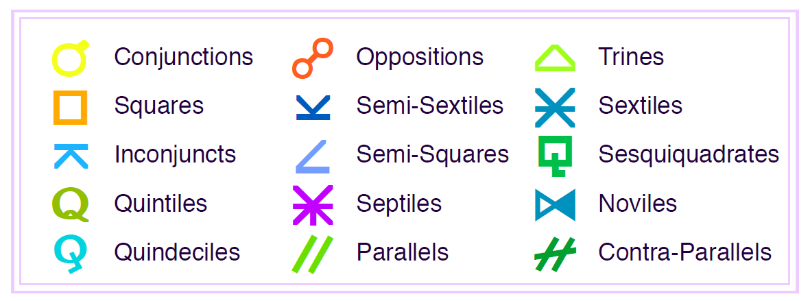 Use these reports to determine the aspects of the major planets (plus Chiron) to one another on any given day of the year 2026. Also listed are the dates and times of: