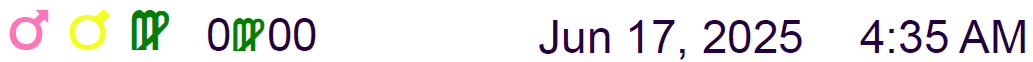 In the above example, Mars enters Virgo (depicted as conjunct the Virgo sign) at 0 degrees Virgo 00 minutes on June 17th, 2025, at 4:35 AM EDT.
