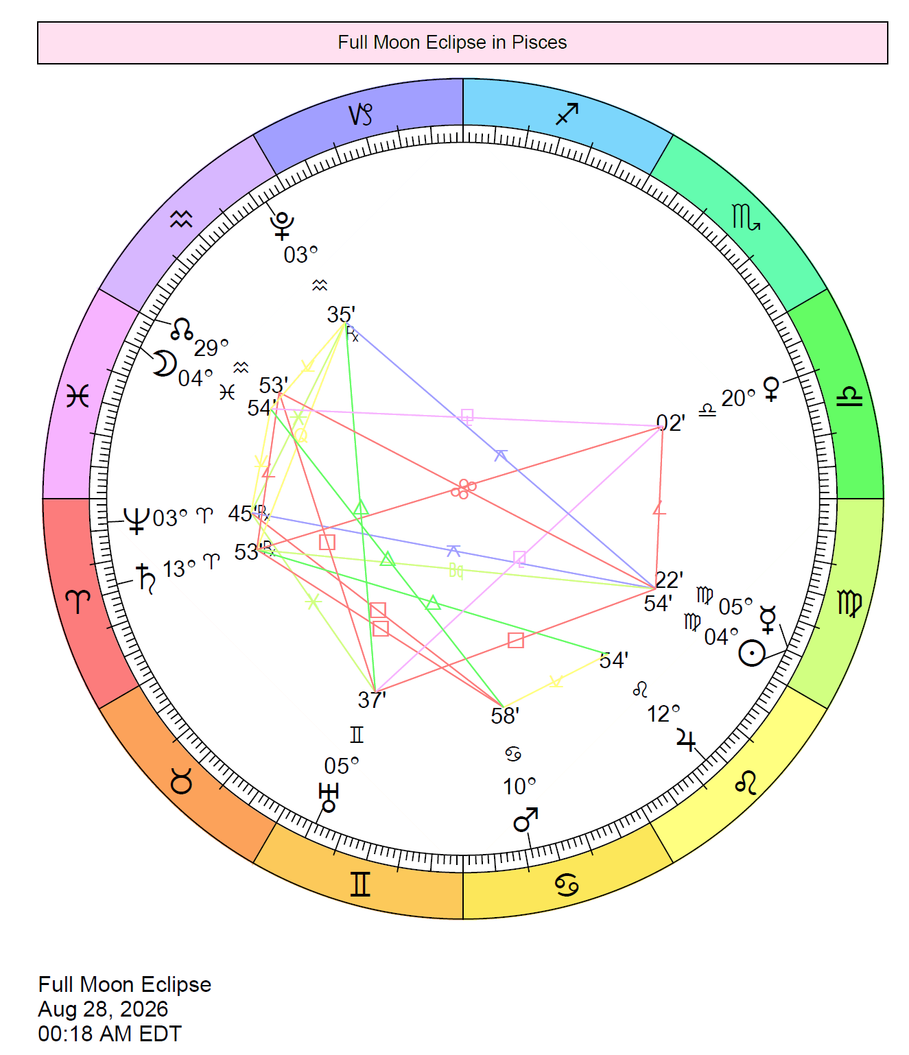 | Mar 3 | 6:38 AM | Full Moon Total LUNAR Eclipse in Virgo | 12 Vir 54' |