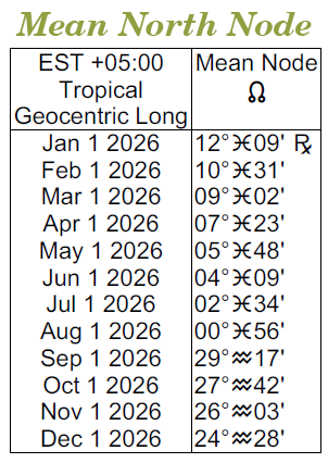 The Mean North Node spans the following degrees in 2026: