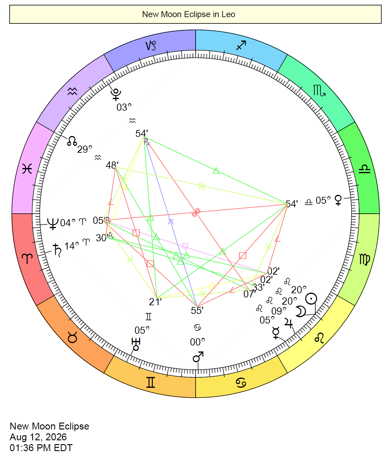 | Feb 17 | 7:01 AM | New Moon Annular SOLAR Eclipse in Aquarius | 28 Aqu 49' |