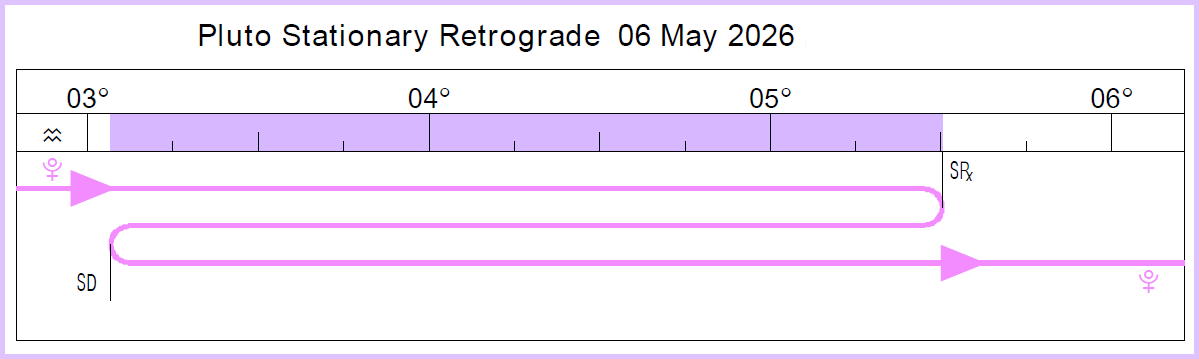 | May 6 | 11:34 AM | Pluto Retrograde | Plu 5 Aqu 30'Rx |