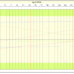 The Declination Graph is another way of looking at aspects. To use this graph, just find the planet(s) you are interested in and follow their positions in the graph. When you see planets that are at the same degree and in the same up or down space, they are said to be parallel.