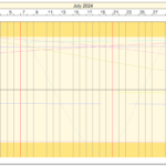 There is a special time when the planet is at Zero–when they are neither above nor below the celestial equator (the middle line in the graph). The planet is especially strong and the principles of that planet are emphasized at these times!