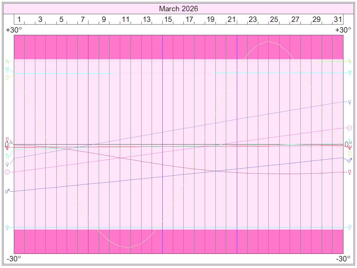 On this page: Planetary declinations in graphical format for the current month and upcoming months.