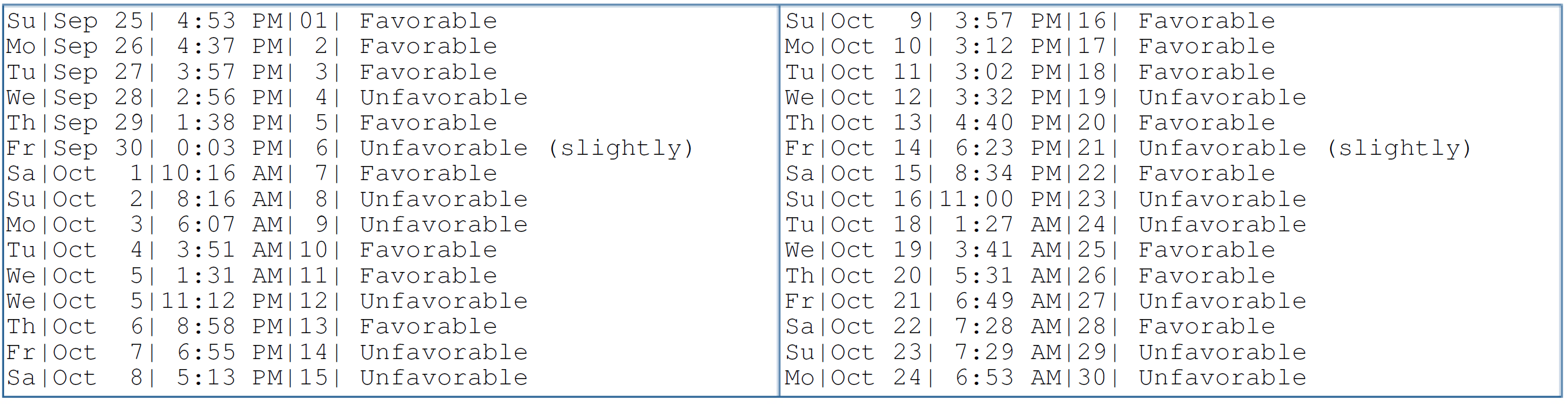 Favorable/unfavorable days for surgery in general, not specific to a person’s chart, which would narrow dates down further.