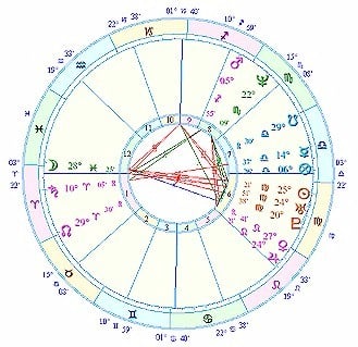 Note that the Moon and Venus are quincunx. The Moon is at 28 degrees and 25 minutes of Pisces: