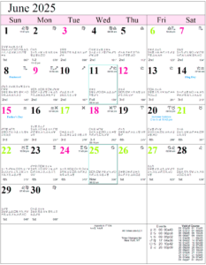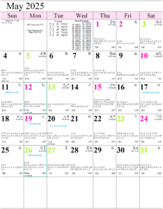 See also the full year monthly calendar for 2025 (PDF format – Eastern Time) or the monthly calendar for 2025 (PDF format – Pacific Time).
