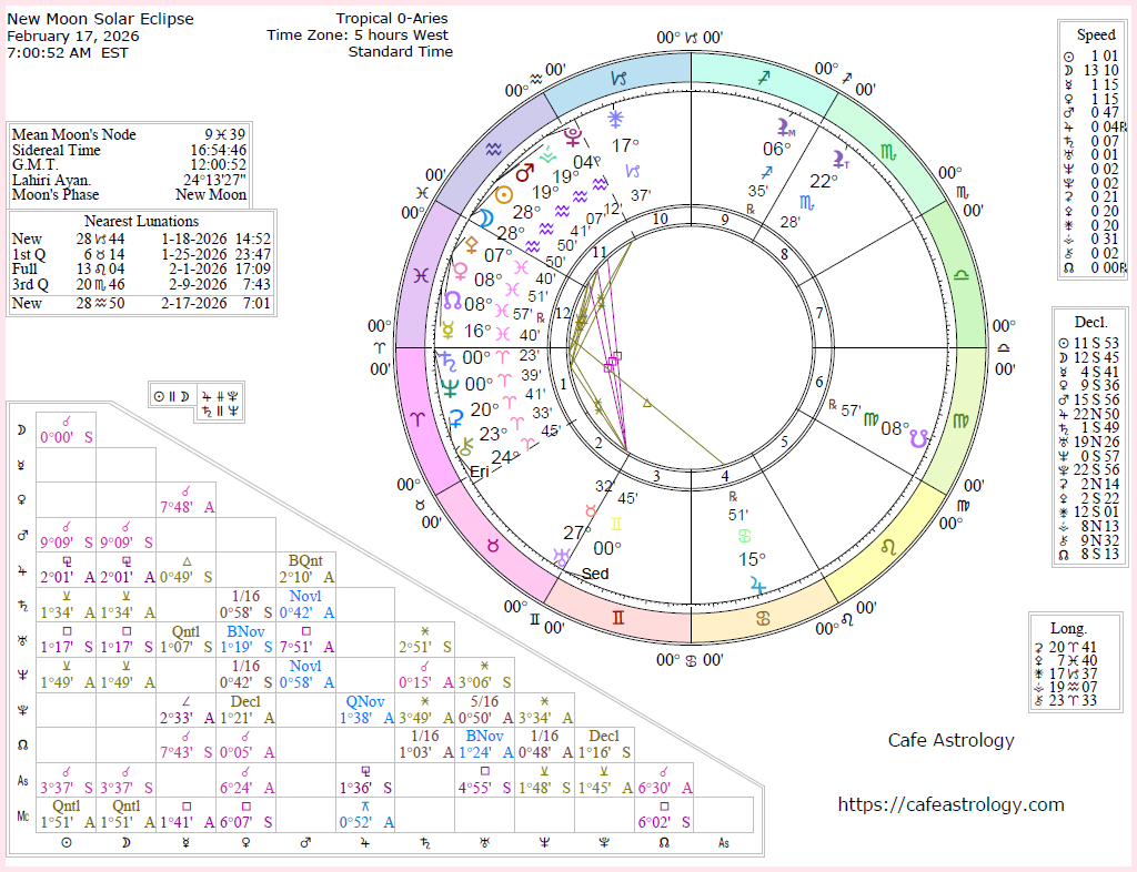 Annular SOLAR Eclipse 2026 February 17 at 28 Aquarius