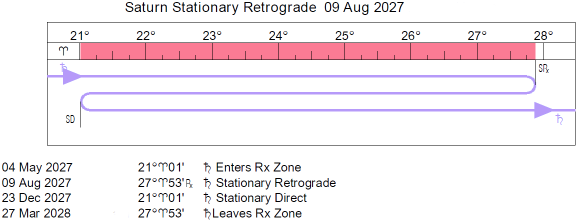 - Saturn leaves retrograde zone/shadow on March 15, 2027, at 14° Aries 45′