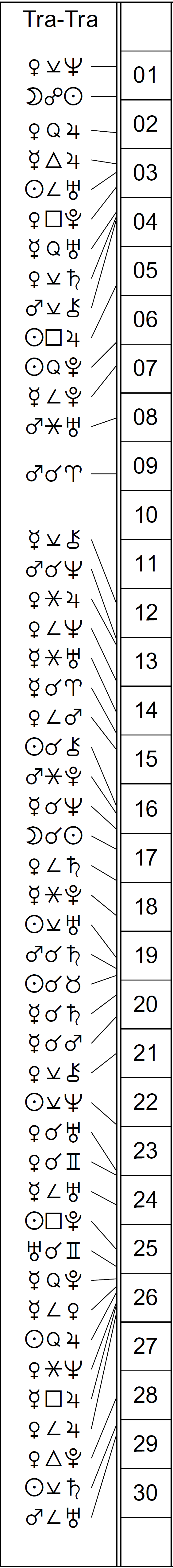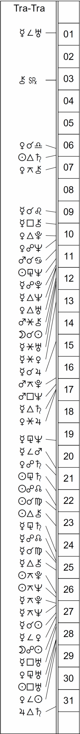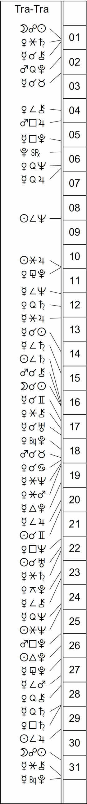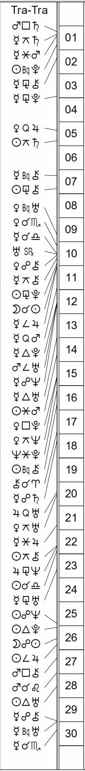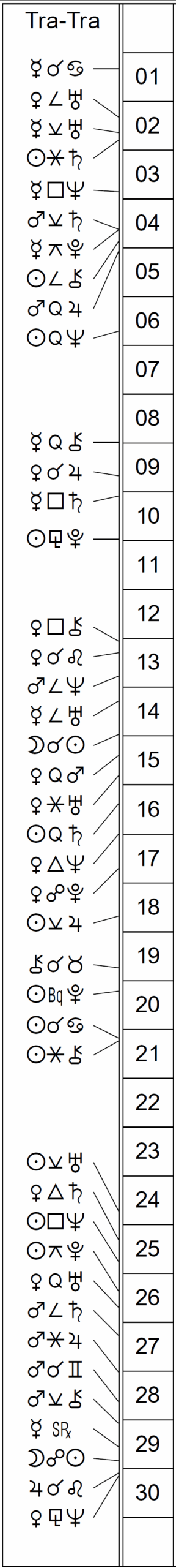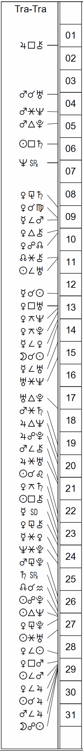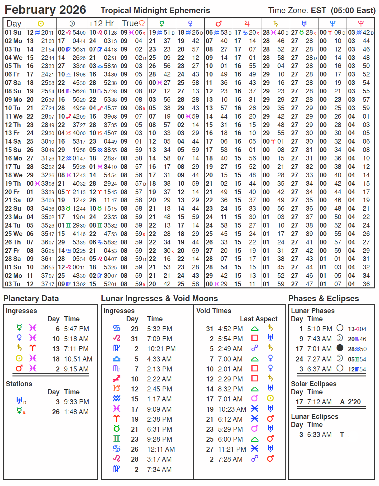 This Month’s Ephemeris with extra points and abbreviations rather than glyphs: