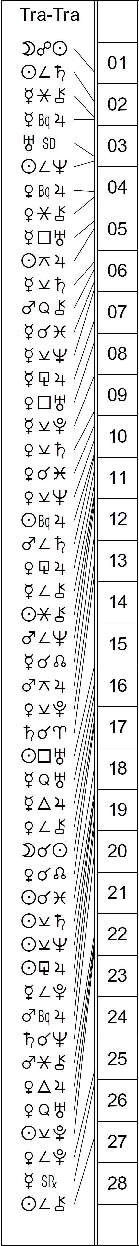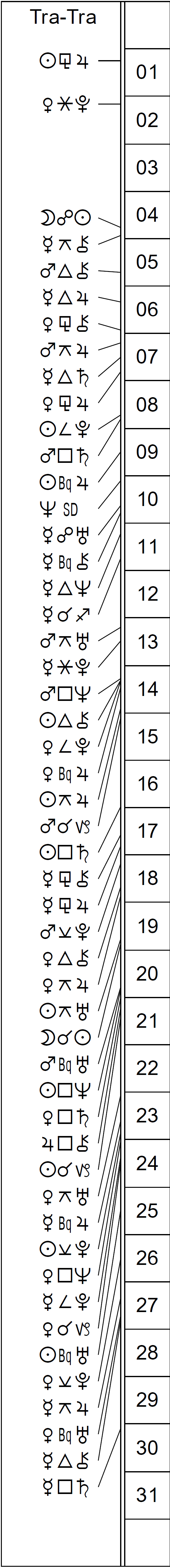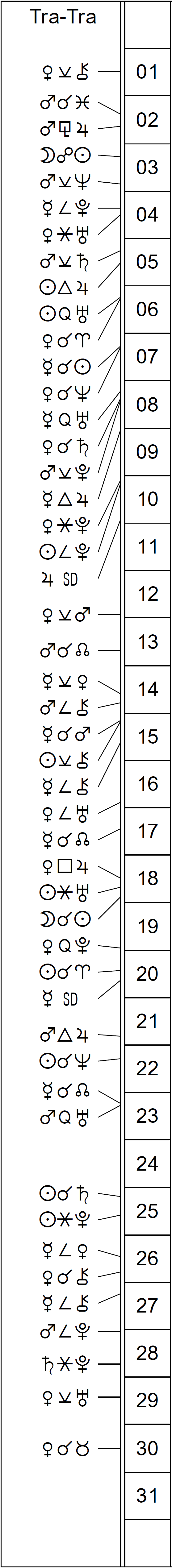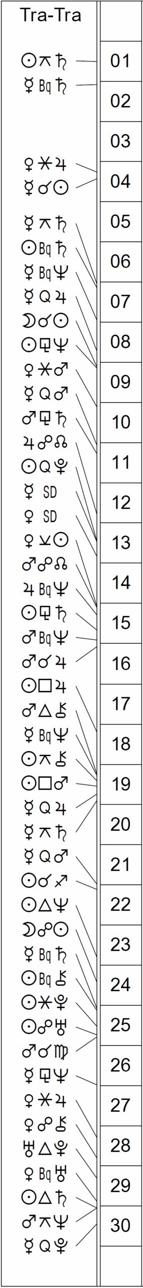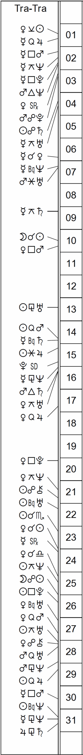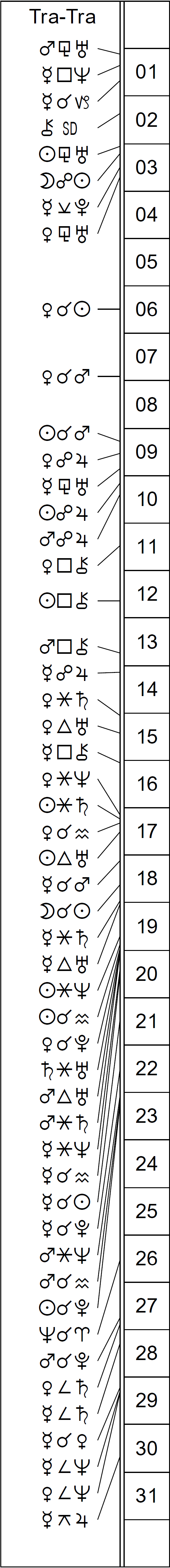 This Month’s Ephemeris with extra points and abbreviations rather than glyphs: